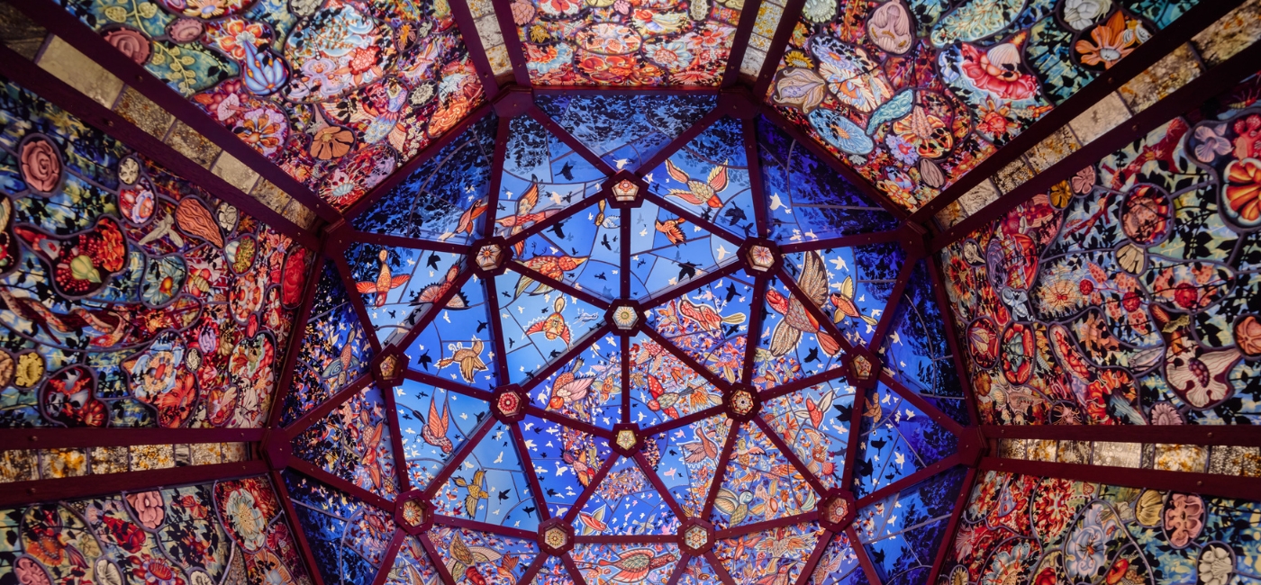 Hours for interior viewing of the Super/Natural dome are 11 a.m.–3 p.m., Wednesday through Sunday. Step inside and immerse yourself in the beauty of Judith Schaechter’s breathtaking stained-glass masterpiece during these museum hours.